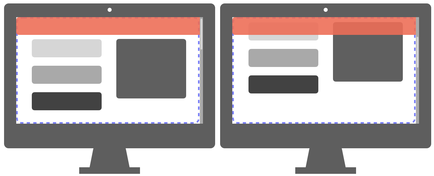 점선으로 둘러쌓인 영역이 기준 위치(브라우저 화면)입니다.