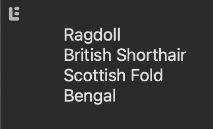 새로운 값인 "Russian Blue"가 첫 번째 리스트의 마지막 항목으로 추가된 것을 볼 수 있습니다.
