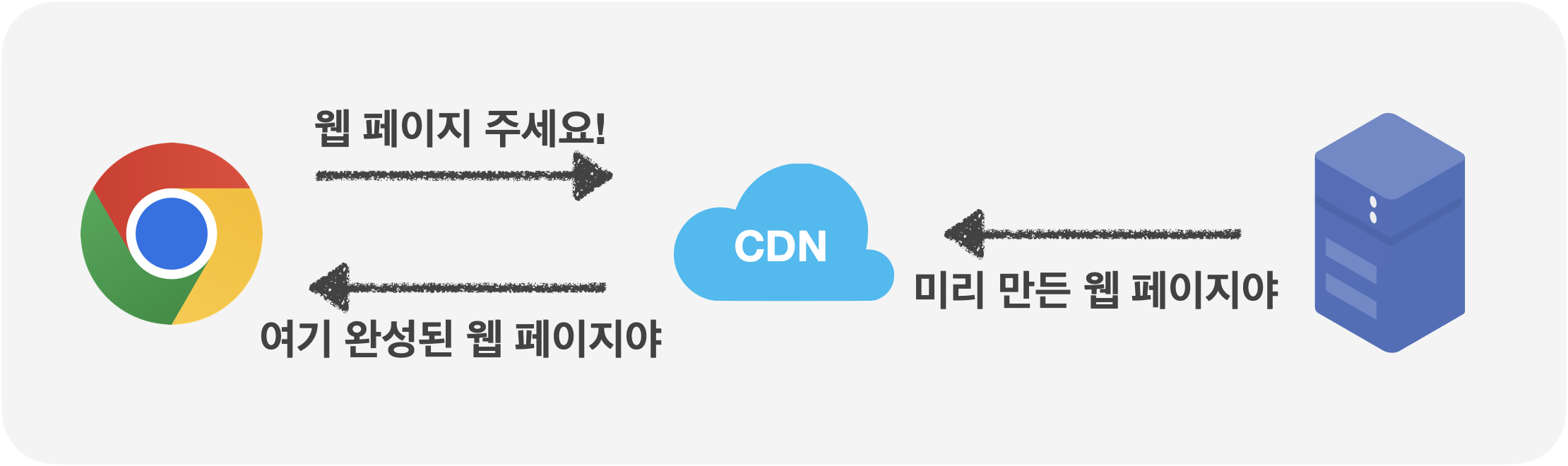 빌드 시에 서버는 가능한 모든 요청에 대한 html을 미리 생성하고, CDN(Content Delivery Network)으로 배포합니다.