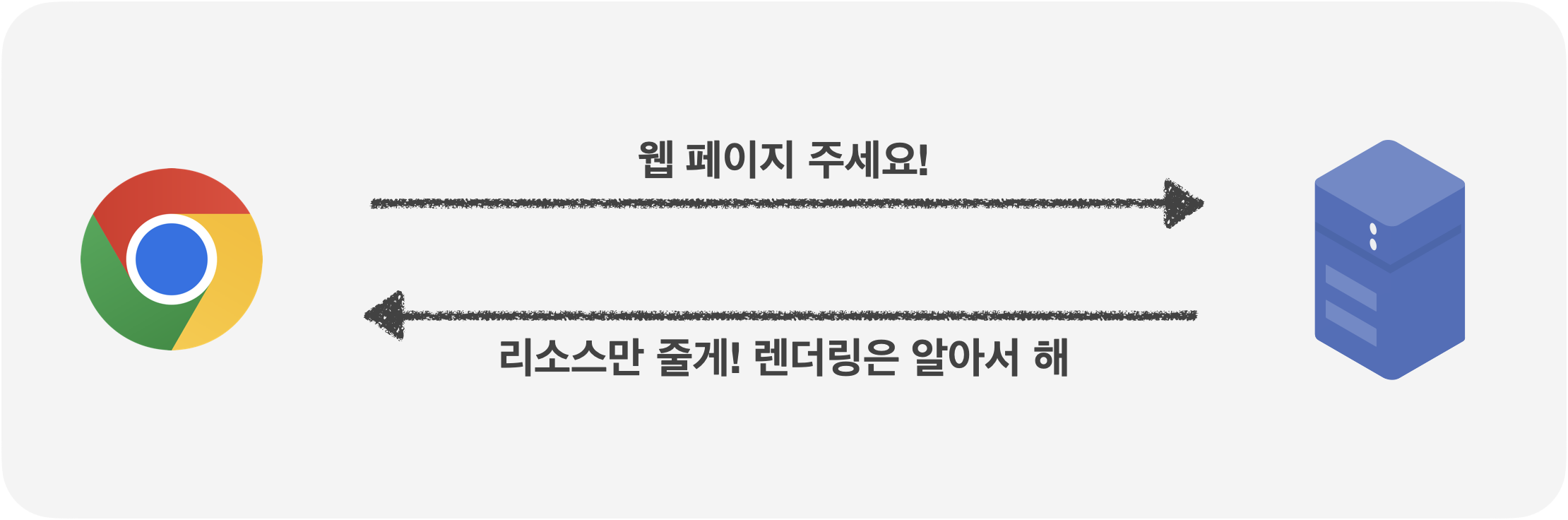 클라이언트인 웹 브라우저가 렌더링을 처리하는 방식으로, 서버에서 받은 데이터를 통해 화면을 그리는 주체가 웹 브라우저가 되는 방식입니다.