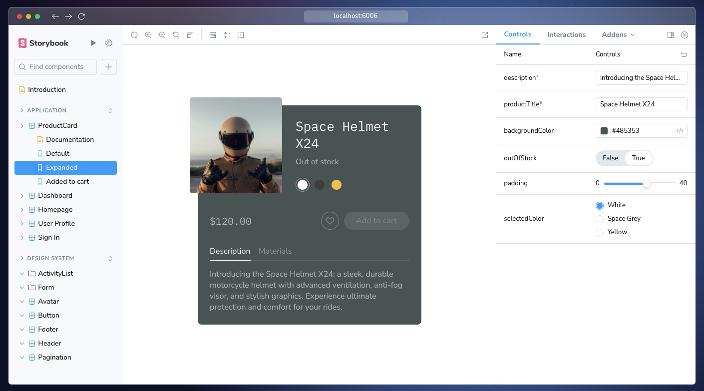 기존 웹 사이트에 영향을 주지 않고 독립적인 포트 번호를 가진 스토리북 웹 사이트에서 컴포넌트를 체험할 수 있습니다.