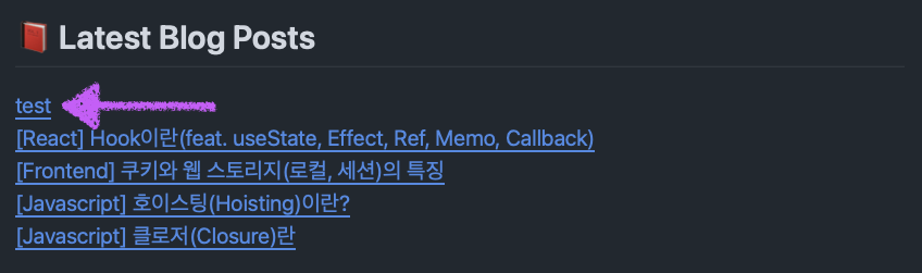 최신 글 항목도 첫 번째로 잘 업데이트된 모습을 볼 수 있습니다.