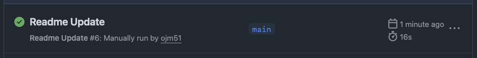 블로그에 테스트용 글을 하나 업로드한 뒤, 액션 탭의 'Readme Update' 워크플로우에 들어갑니다.