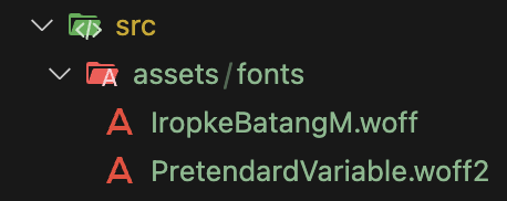 저는 다음과 같은 폴더 구조로 폰트 파일을 저장했습니다. (./src/assets/fonts)